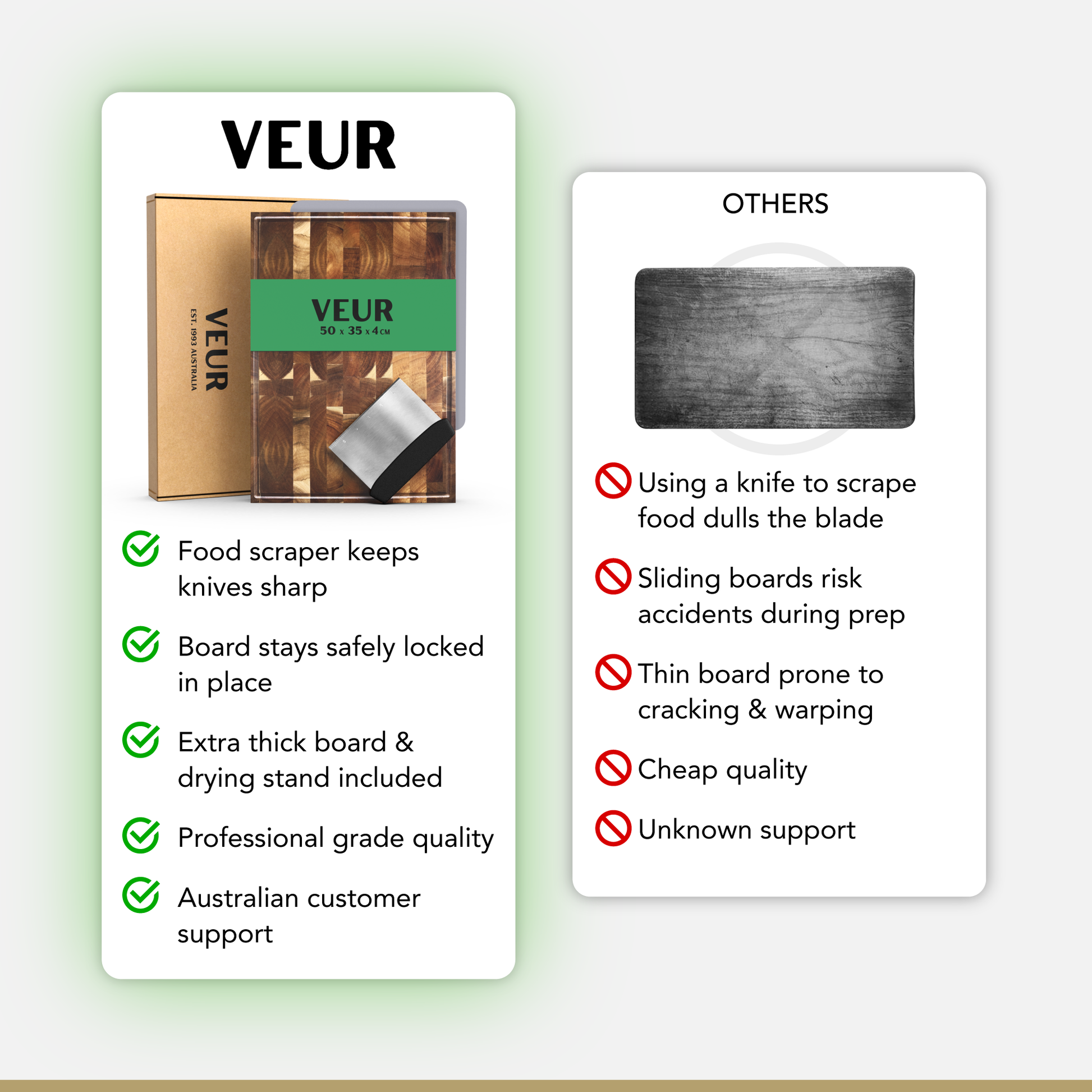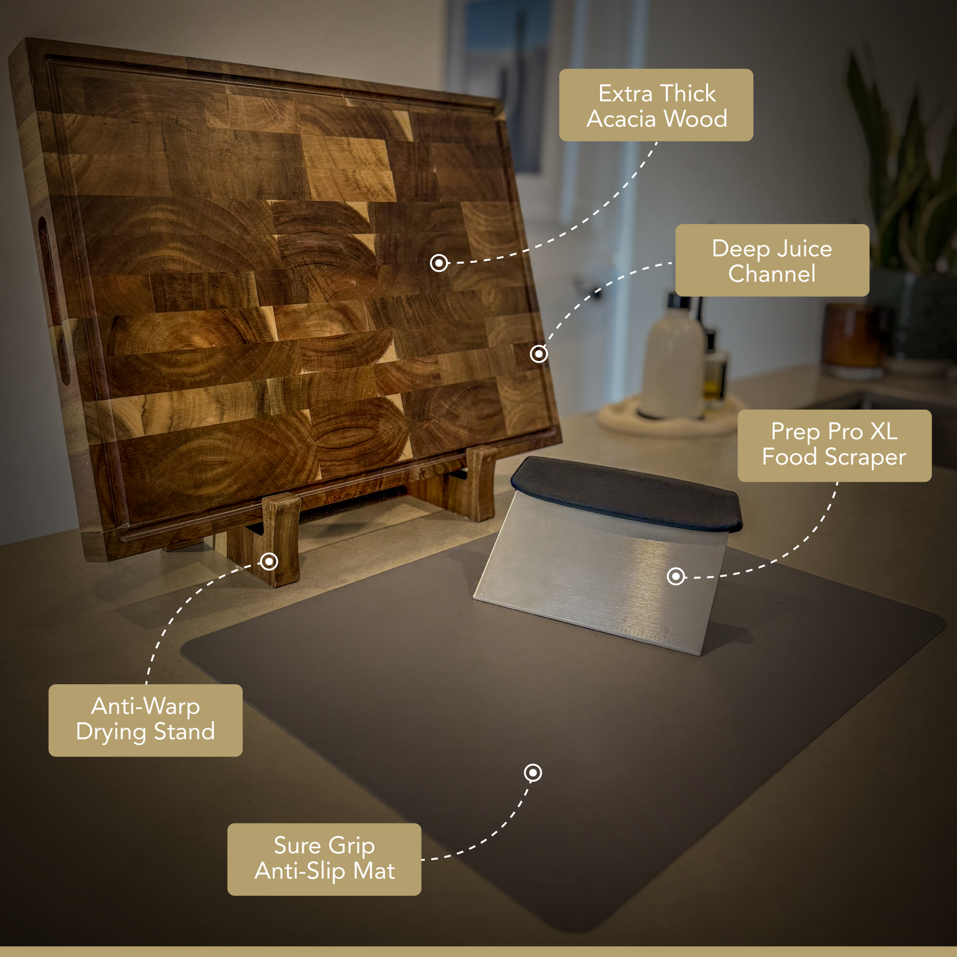 Premium End-Grain Chopping Board – end-grain wood fibres keep your knives sharper for longer, repair knife marks, and provide an elegant, long-lasting surface. Built to withstand daily use while maintaining its refined aesthetic - (value $150)